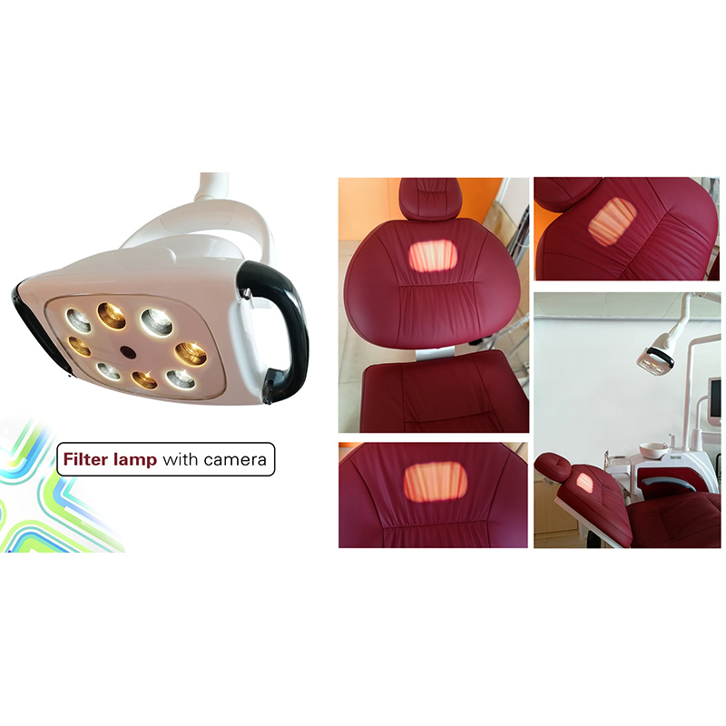 To avoid direct sharp light on the patient’s eyes and dentist’s eyes to cause discomfort during treatment, filter operation LED lamp is developed, with focus and peaceful light for people; Built- in camera for better view while treatment.