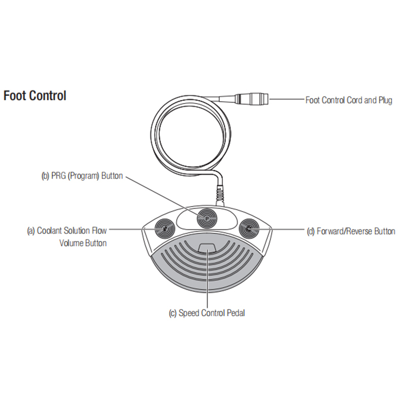 The Foot Control is user friendly and allows operation of all functions within the preset parameters without touching the control panel to avoid accidental activation of the micromotor outside the preset limits. The Surgic Pro/ Surgic Pro+ is certificated according to IPX8.