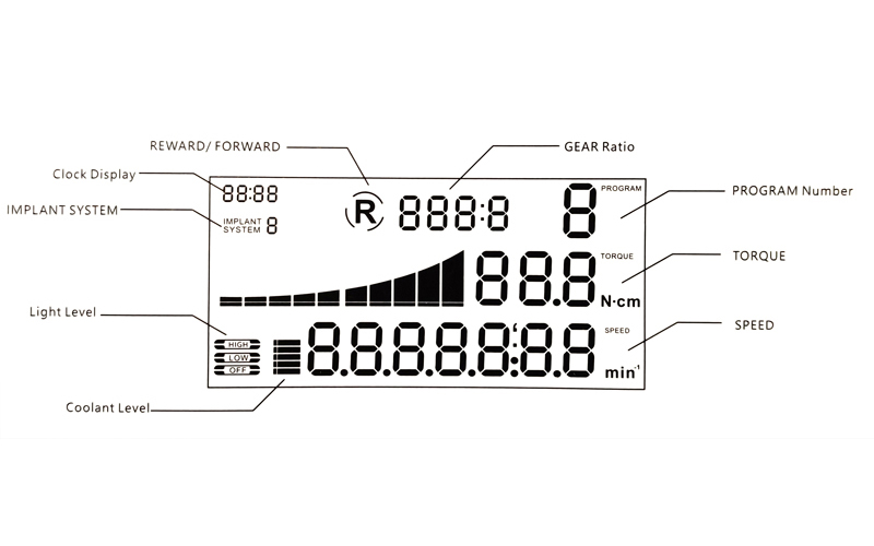Control unit with advanced handpiece calibration for torque & speed accuracy.
