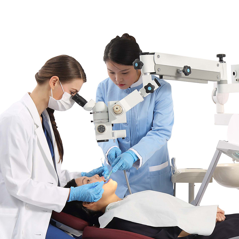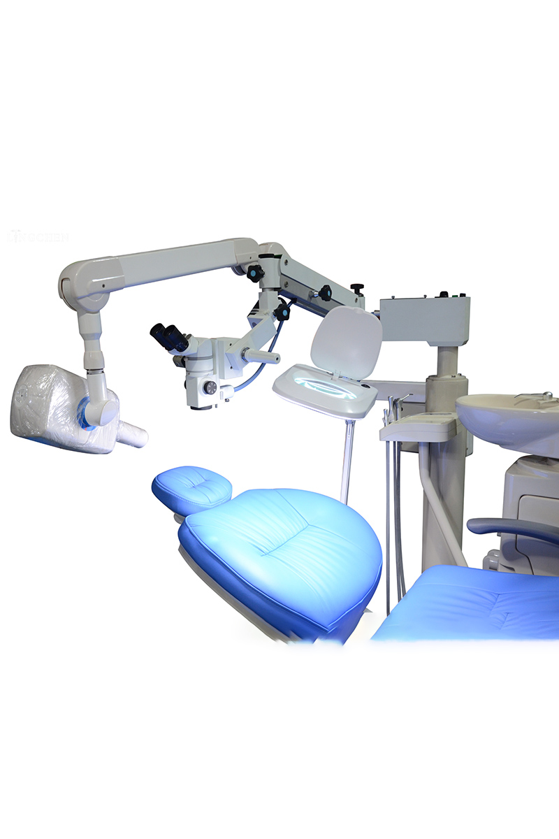 1. Microscope with micro- fine foot pedal: improve the dentist’s work & increase the reputation of clinic; 25cm working distance; with 5 levels changer of magnification, biggest one 20.4X; with fiber optic light.