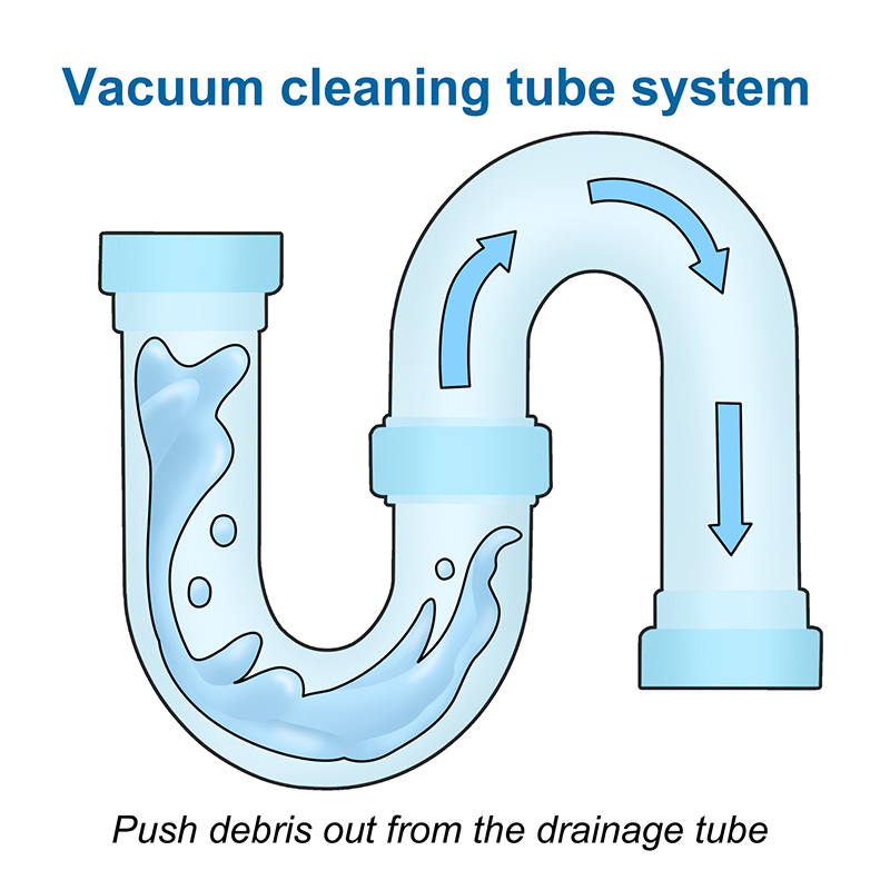 Vacuum cleaning tube system: Push debris out from the drainage tube of dental chair- remove bad smell, keep clinic with fresh air.
